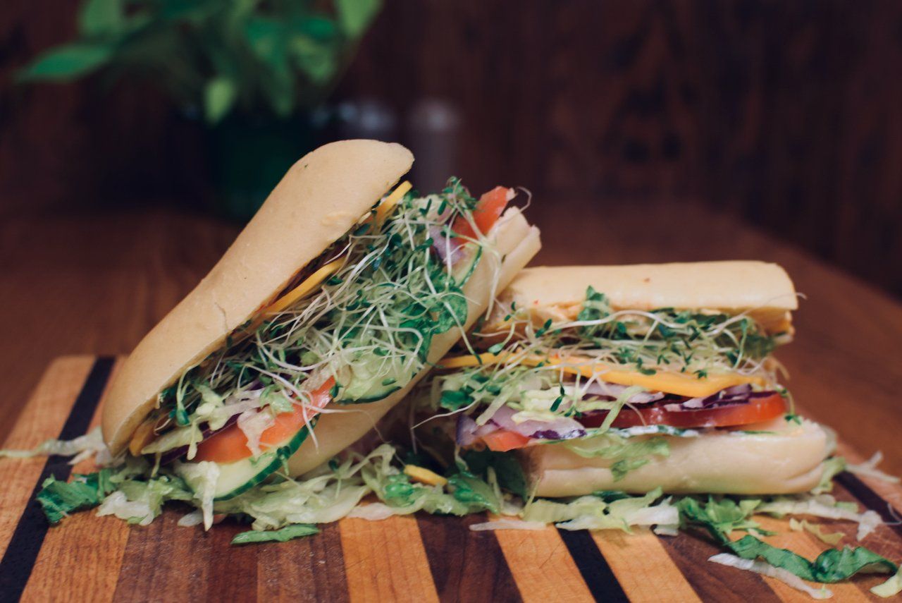 Cheddar cheese, provolone cheese, avocado spread, lettuce, tomato, sprouts, onion & mayo