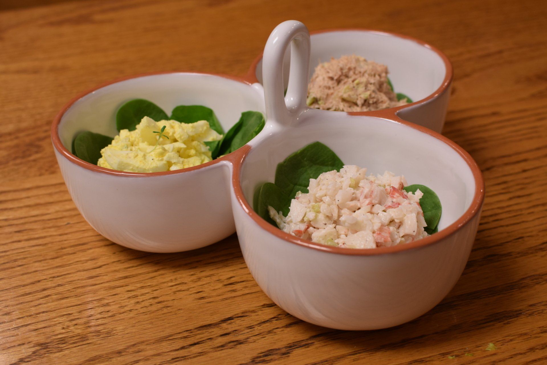Fresh crab mixed with diced celery, topped with onion, lettuce, tomato, sprouts & mayo
